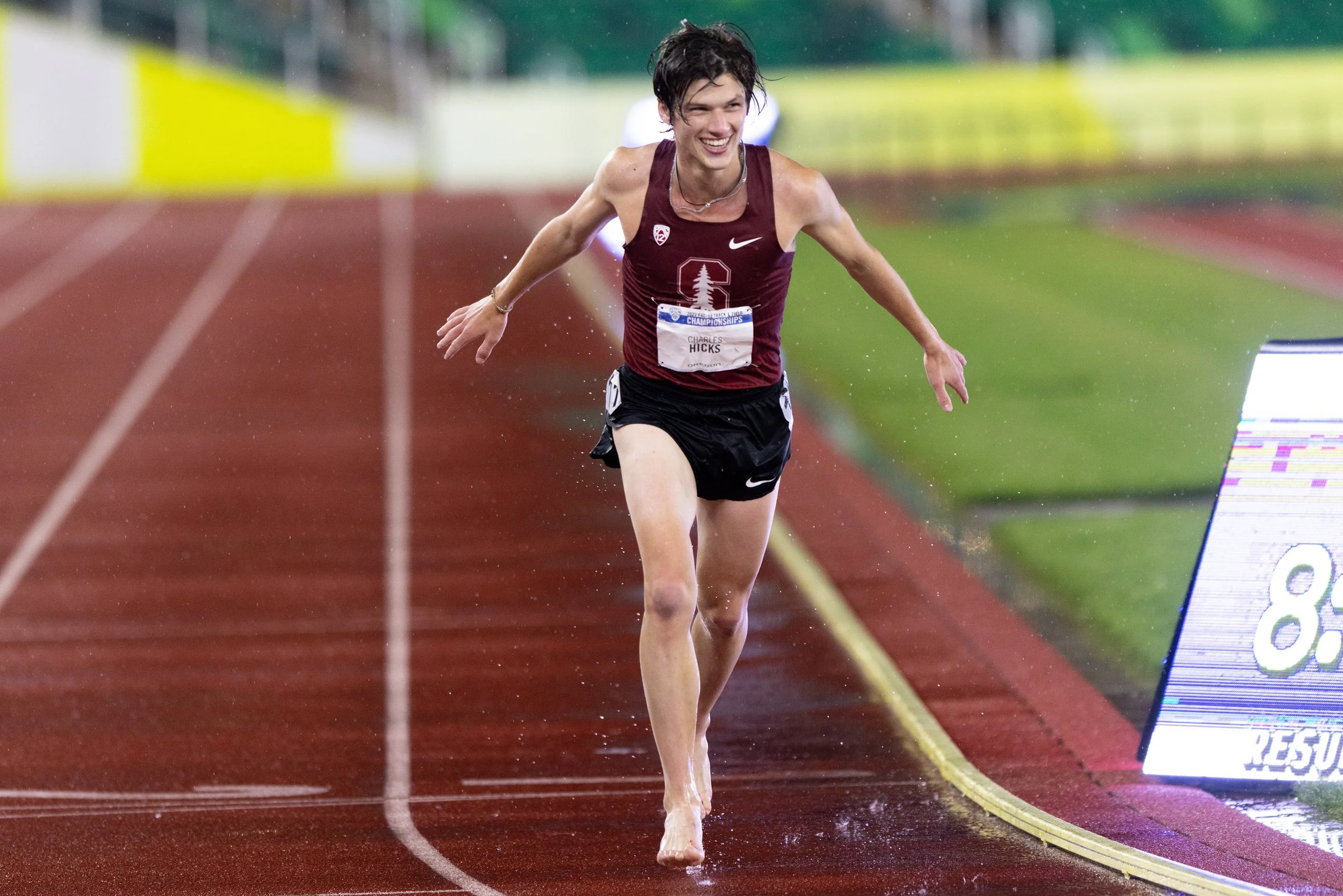 As Hicks took the lead, he knew that Lumb was behind him. But Hayward Field’s new jumbotron, brightly lighting up the venue, revealed Lumb was closer than he thought.